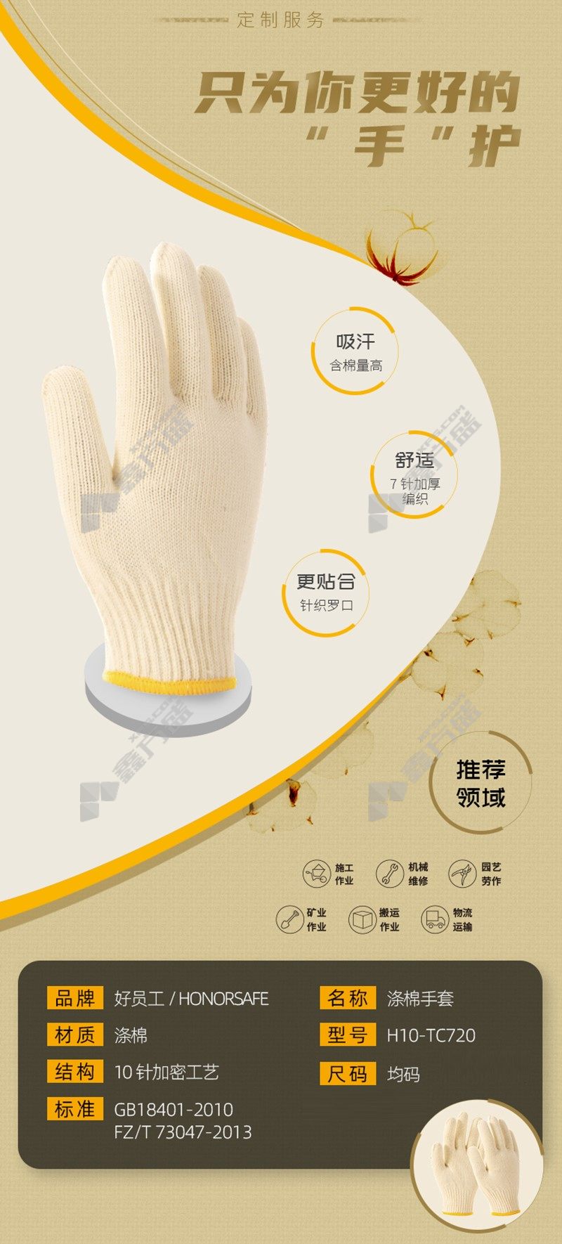 good staff H10-TC720 10 needle polyester cotton yarn gloves H10-TC720 10 the needle is white and has no specifications.