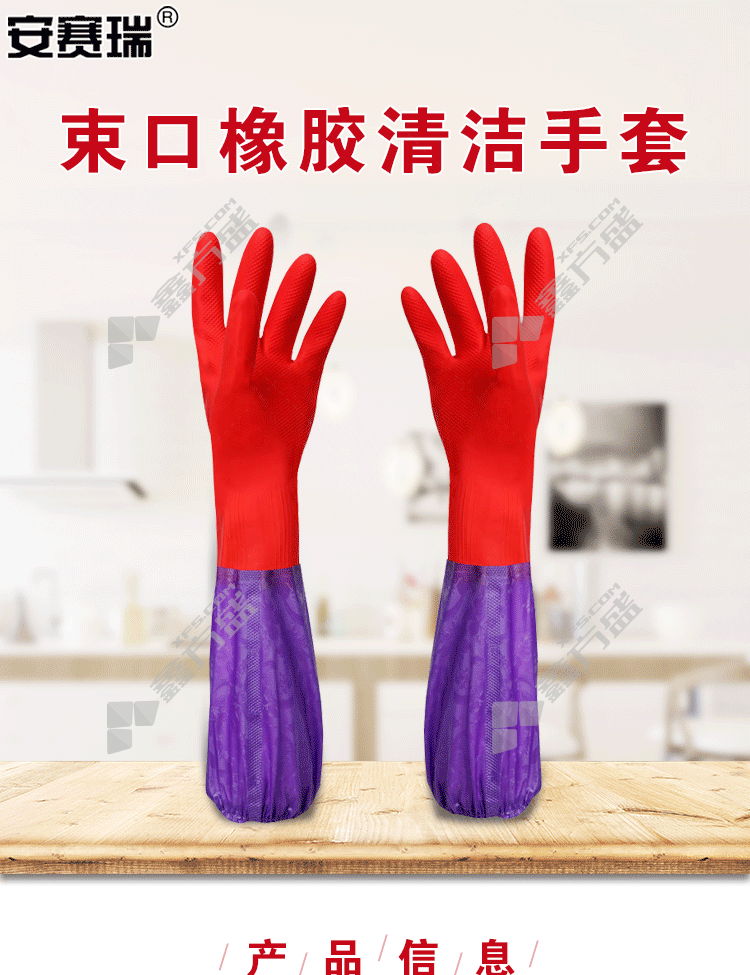 ansery 28707 velvet rubber cleaning gloves 28707 length about 45 cm red and purple no specifications