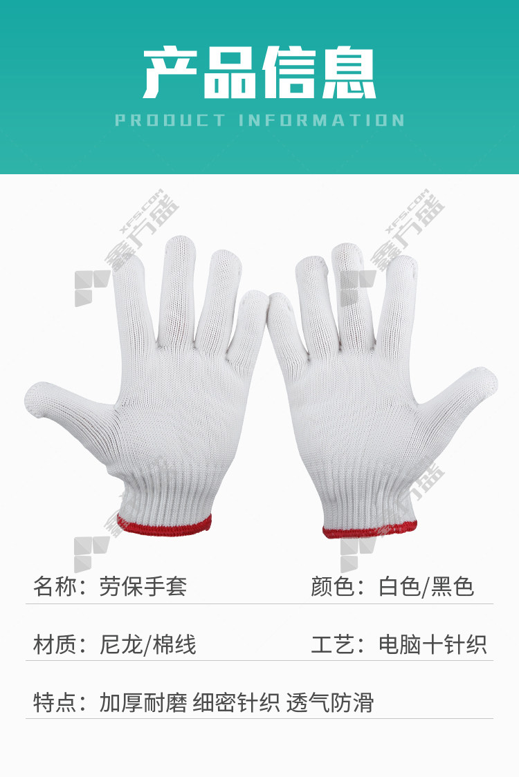 putaite thread gloves 72 g one size fits all, white with red edges, no specifications