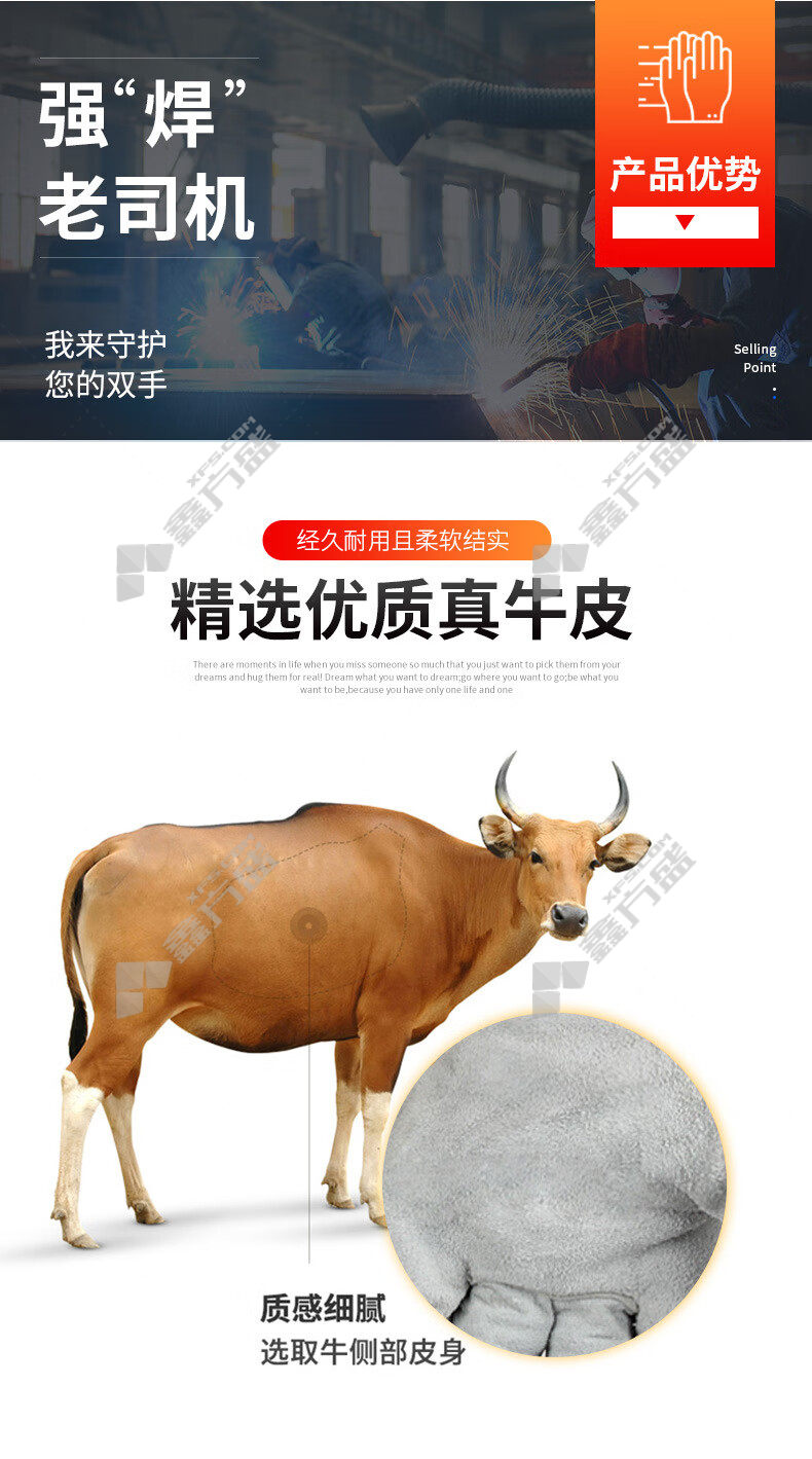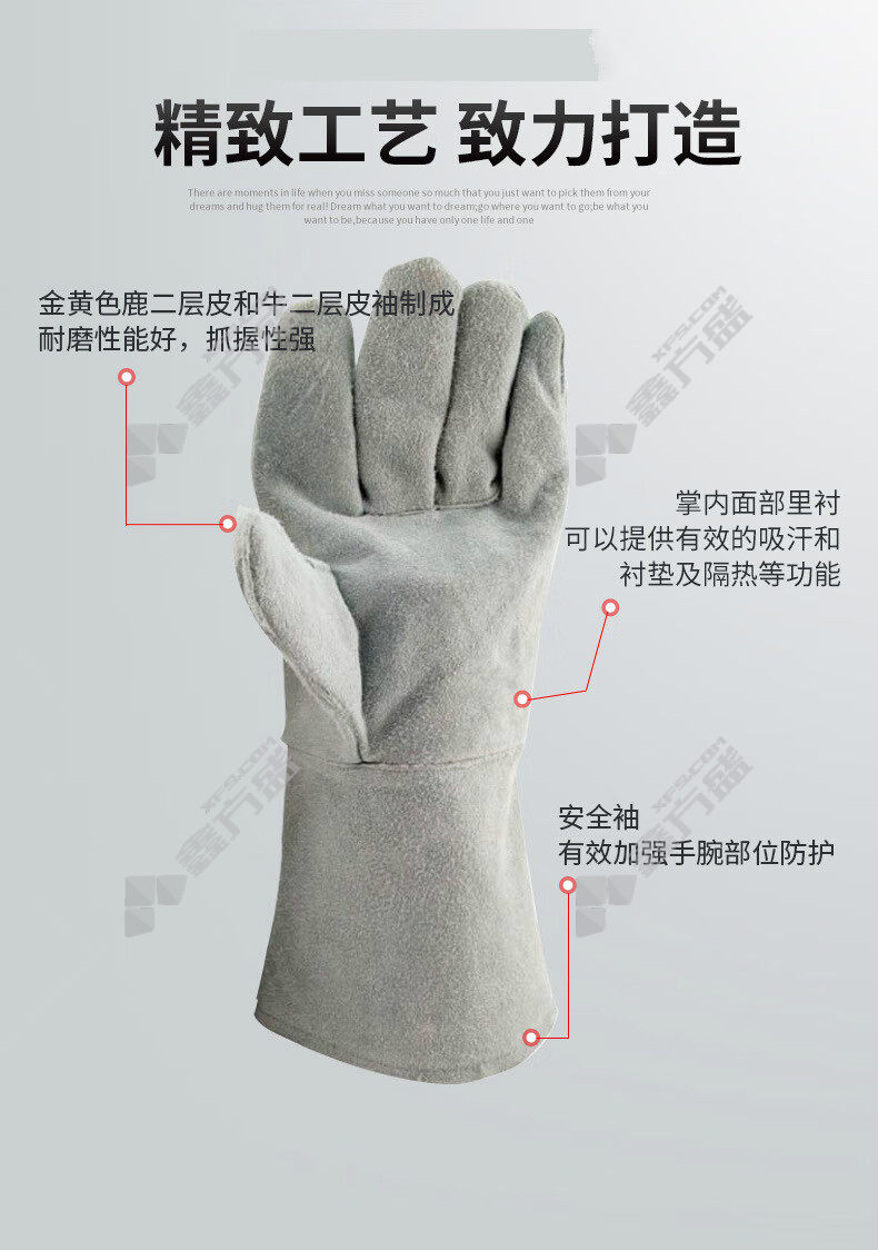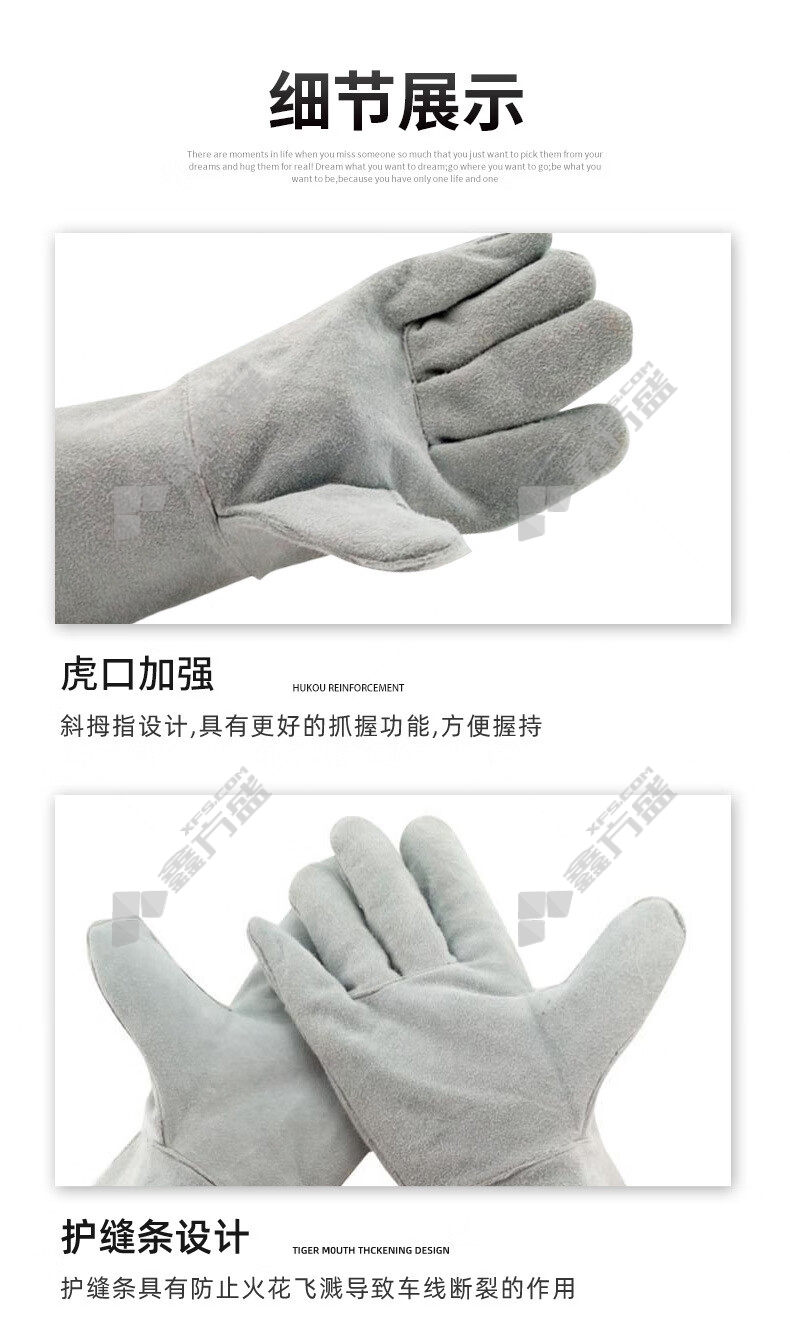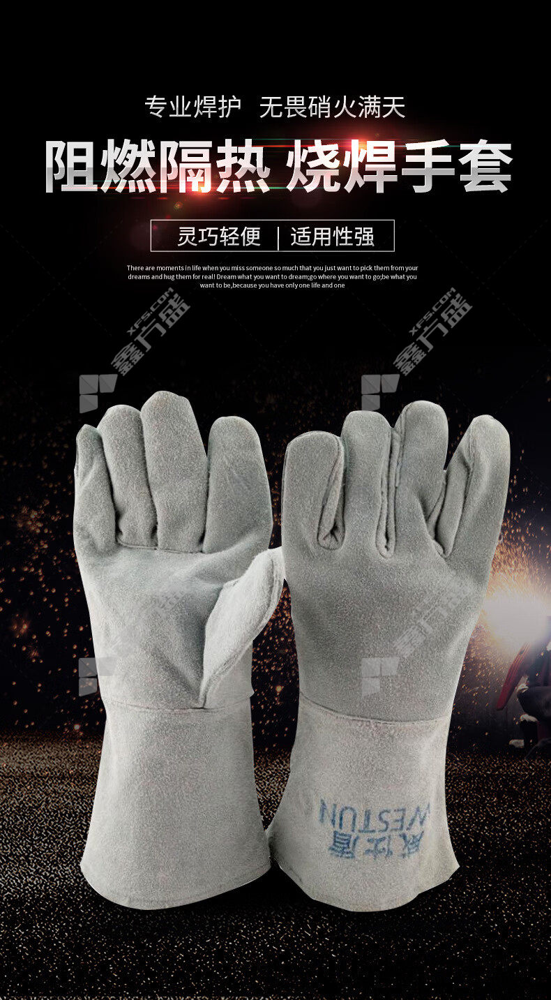 weiss shield BC grade cattle two-layer broken back welding gloves G-1649 35cm XL grey G-1649 35cm/L/grey