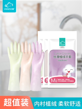 cloud lace slip flocking plus velvet thickening household gloves L code yellow 20778 S code /yellow /20778