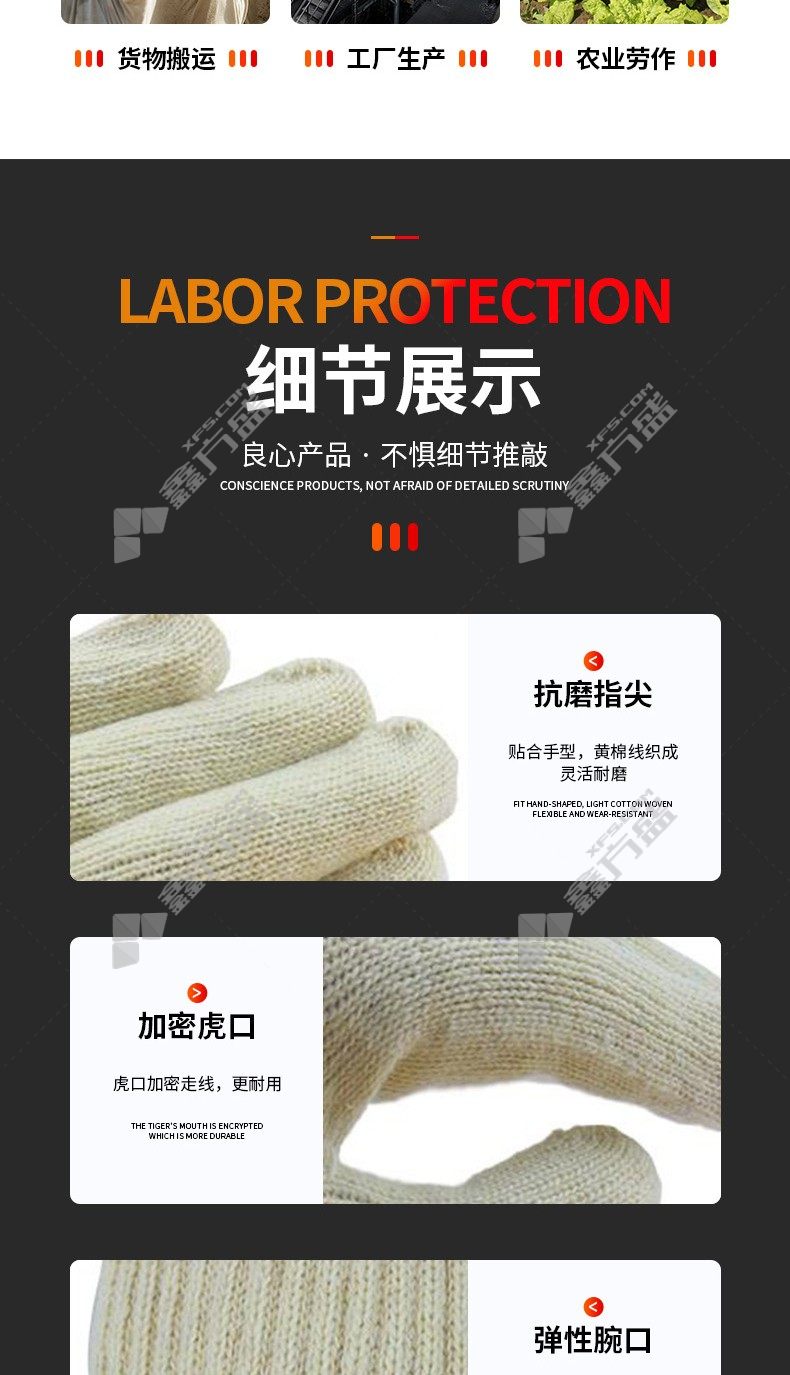 junyu 7 H005 yellow cotton gloves 7 H005 10 needle 500 g blue edge no specification