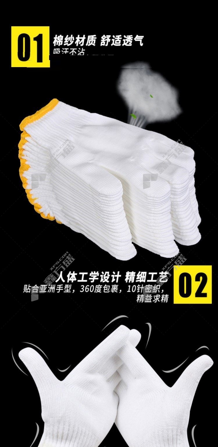 selite ST55102 cotton gloves ST55102 10 needle 800 g white yellow edge no specification