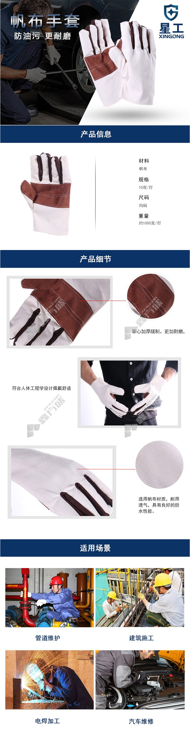 star worker XGS-F2 canvas railway gloves XGS-F2 one size fits all white brown no specifications