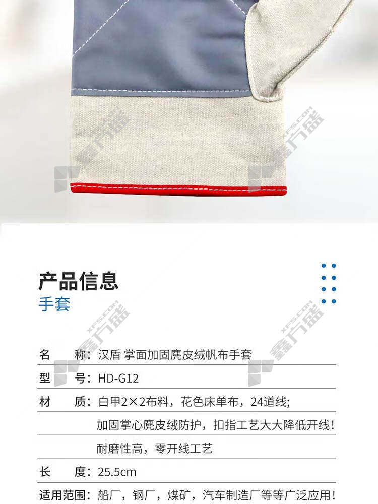 han dun HD-G12 reinforced suede canvas gloves with left and right palms. number of canvas strands: 2 *2 light gray white armor 24 lines no specifications