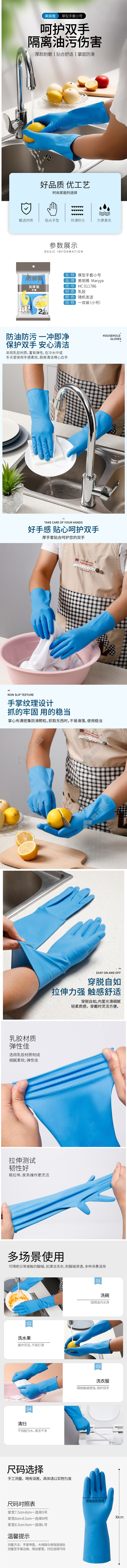 meliya wear-resistant latex housework gloves S code blue thickened type L code /blue /thickened type