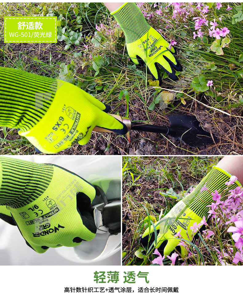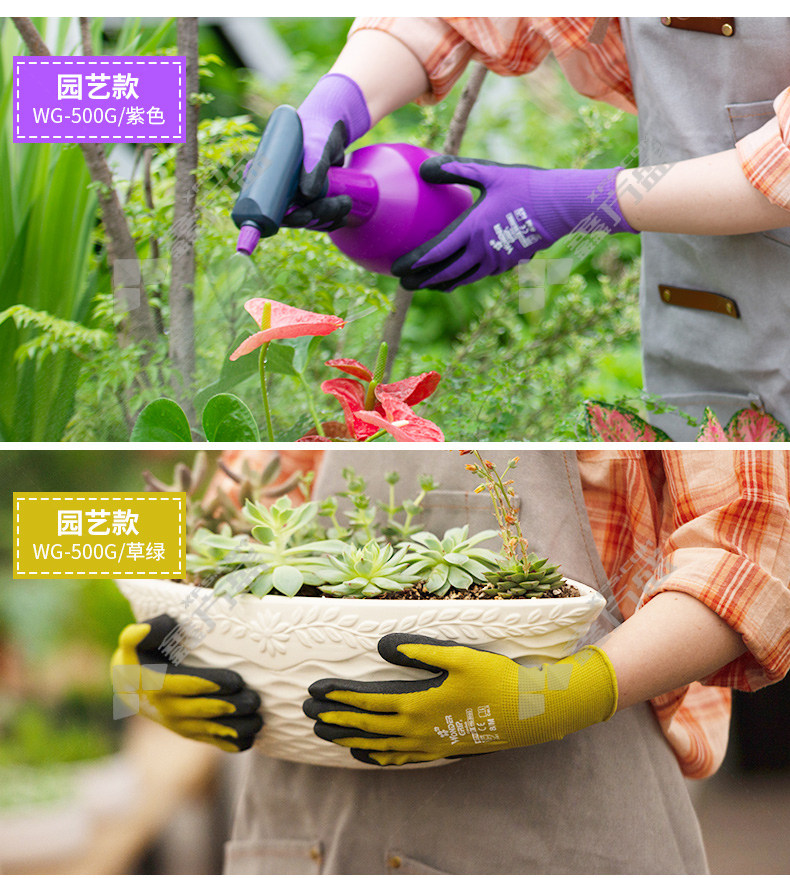 multi-strength anti-slip, anti-prick, wear-resistant latex rubber gloves yellow pink blue green WG-500G-S S no specifications