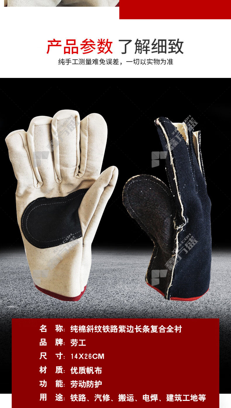labor pure cotton composite fully lined welding labor protection gloves HC-02C one size fits all, white, no specifications