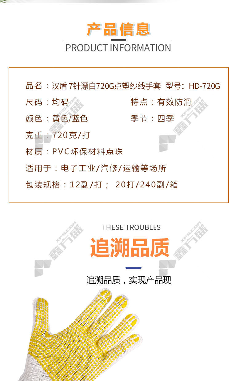 han dun HD-720G-10 yellow dot palm dot polyester cotton yarn gloves 10 needles 720 g no specifications
