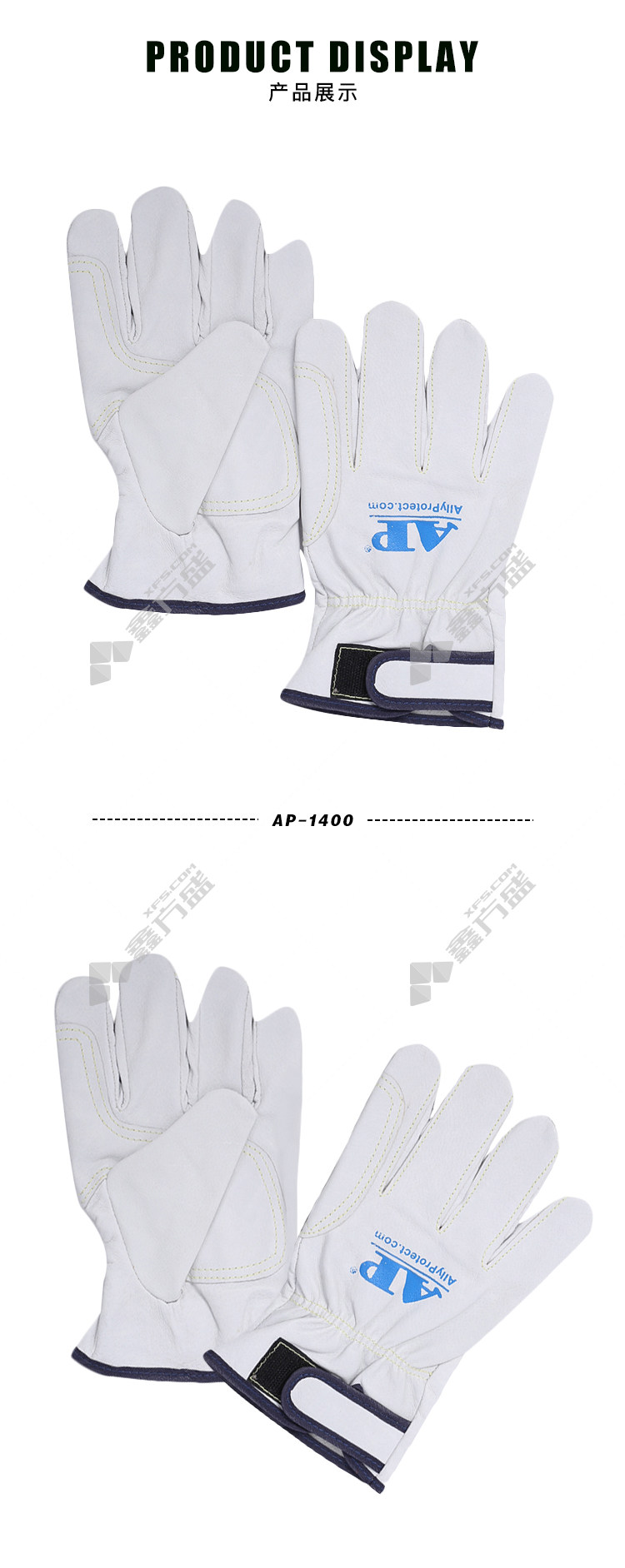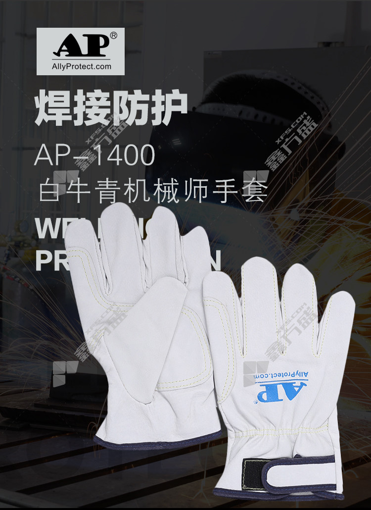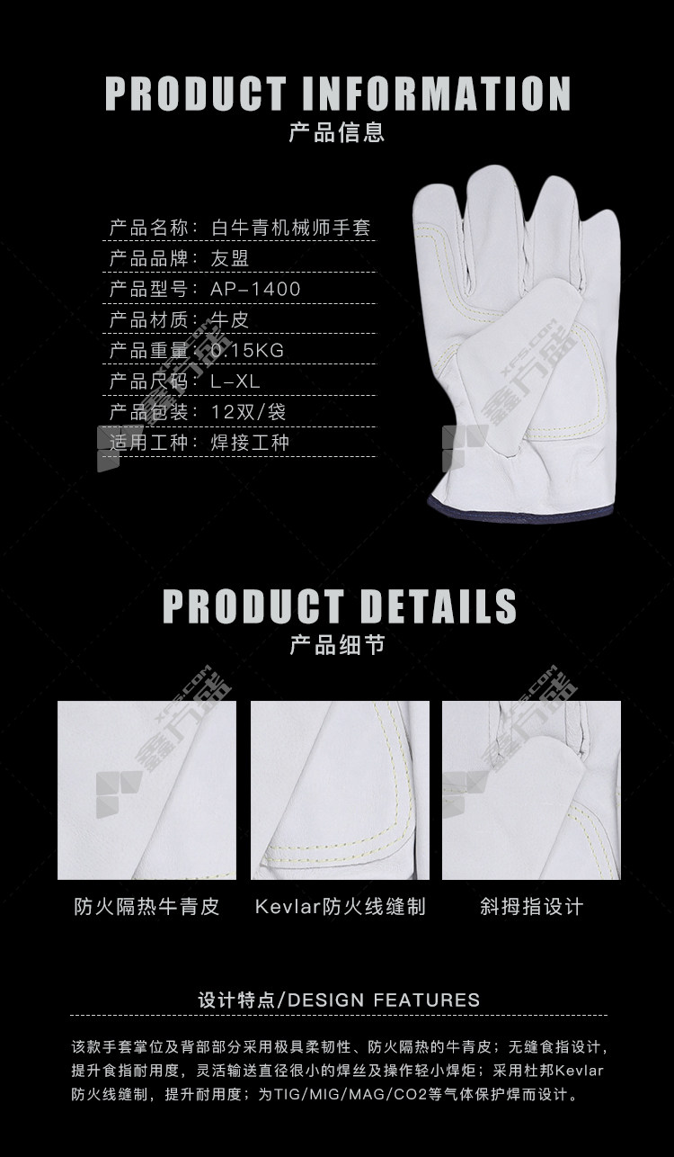 umeng premium white cow green leather gloves XL AP-1400 M/AP-1400