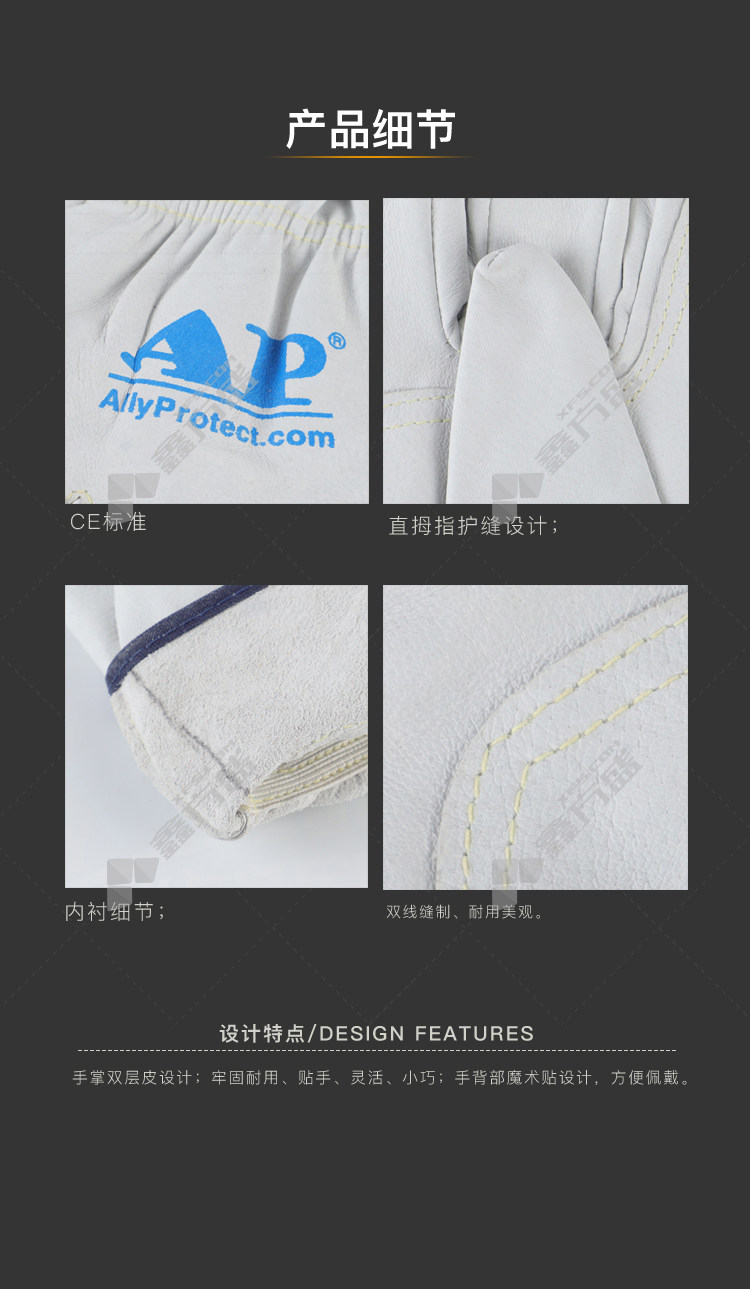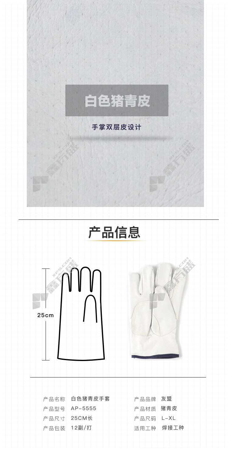 umeng white pig green leather gloves L AP-5555 M/AP-5555