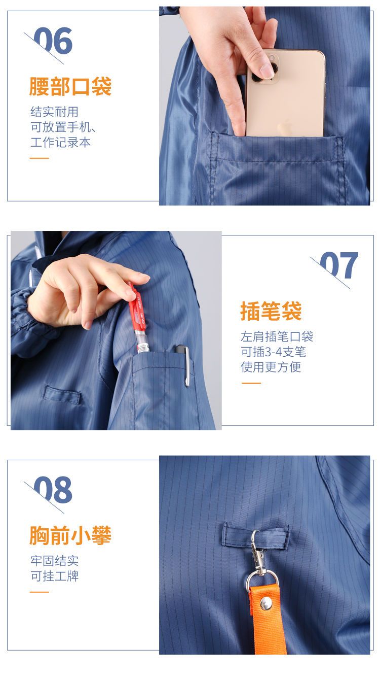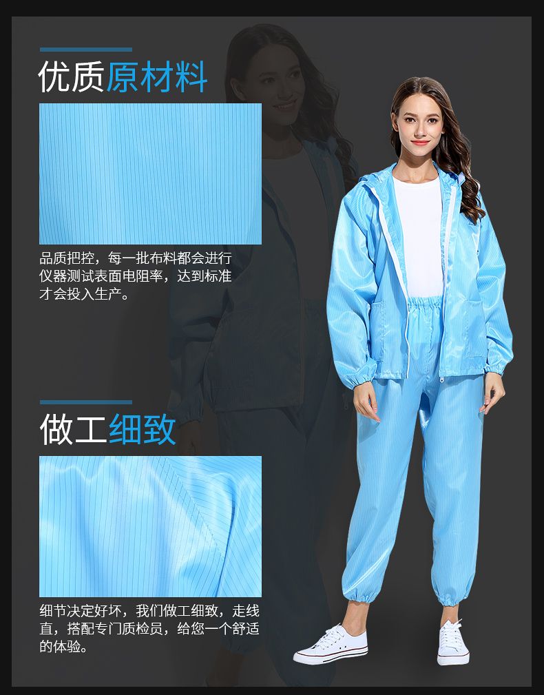 这款防尘服质量好,穿着舒服,防尘效果好,拉链很顺滑,易清洗,价廉物美,设计时尚,值得购买。