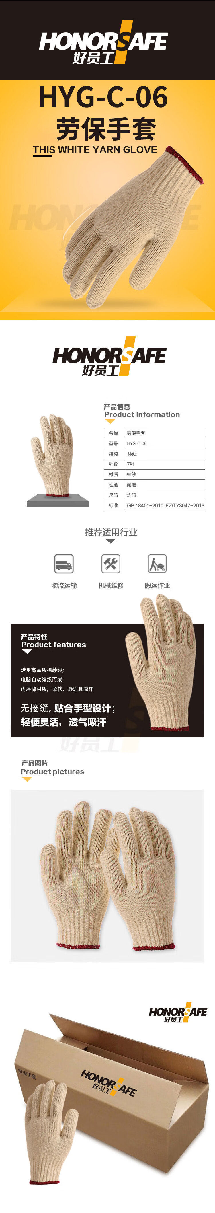 good employee yarn one size labor protection gloves HYG-C-06 7 one-size-fits-all needle size (unit: pair) no specifications