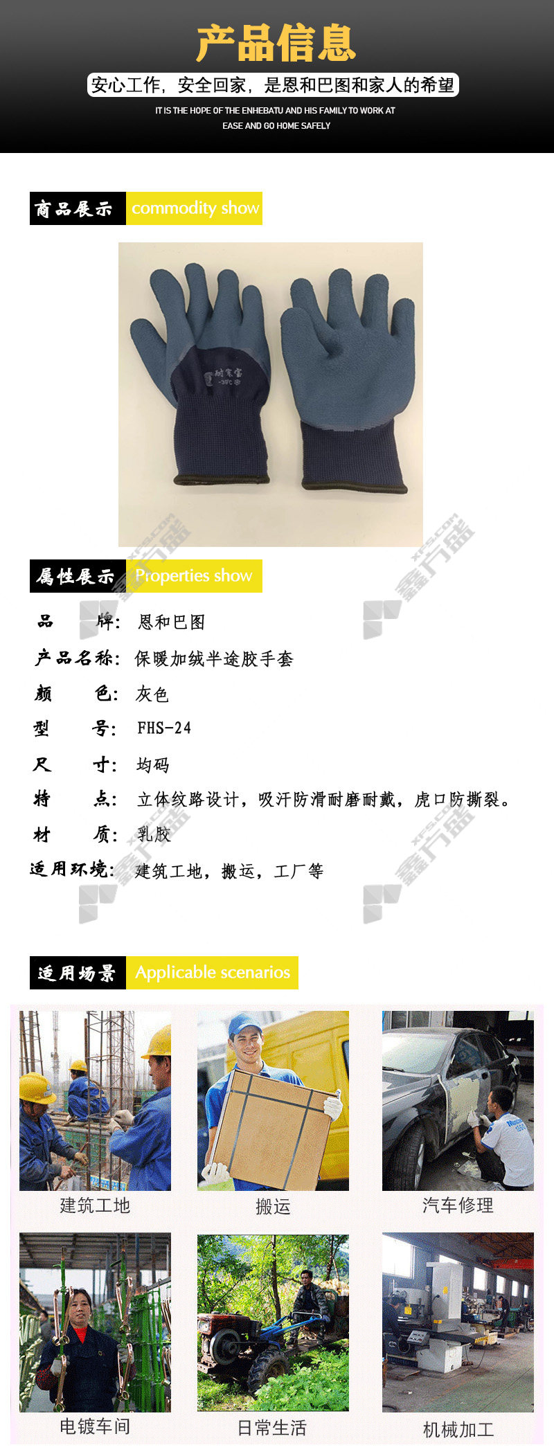enhe batu warm velvet mid-length rubber gloves FHS-20 no specifications