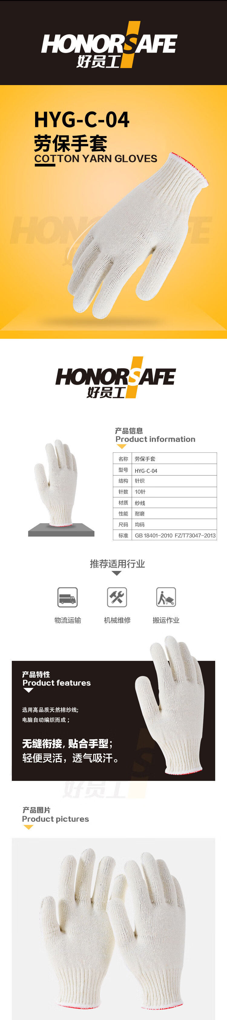 good employee labor protection gloves HYG-C-04 10 one size fits all needle yarn (unit: pair) HYG-C-04 no specifications