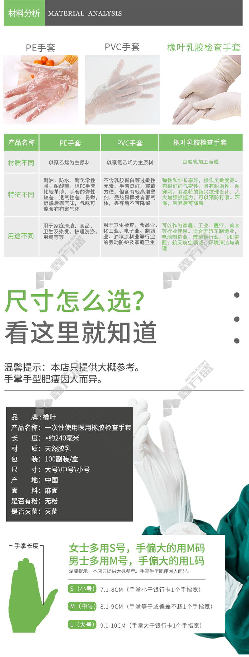 oak leaf 100 pack powder-free disposable rubber examination gloves M code light yellow S code /light yellow