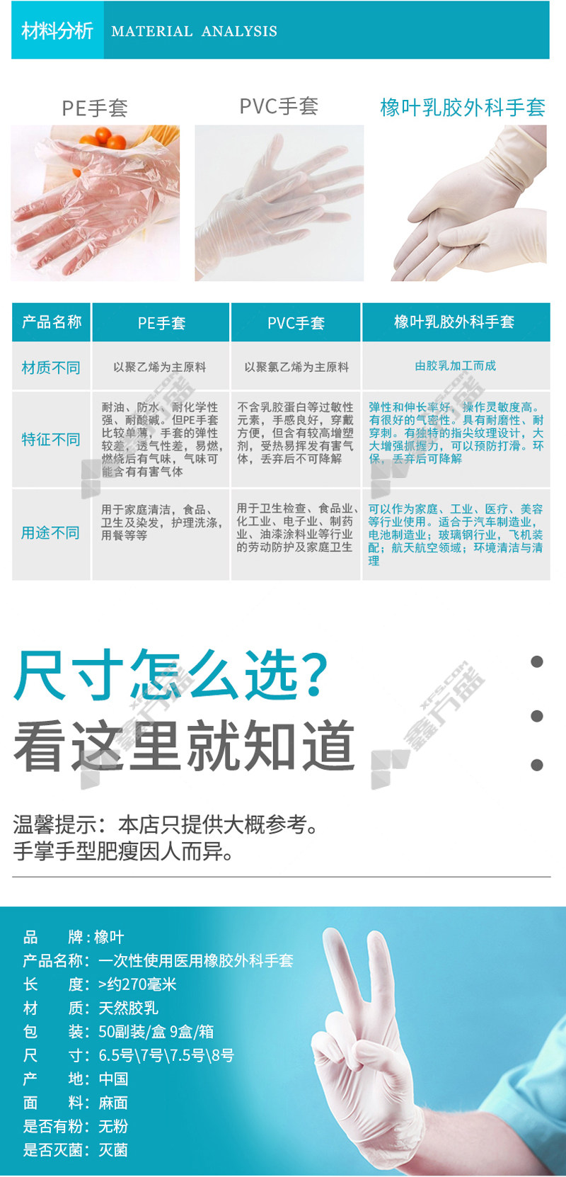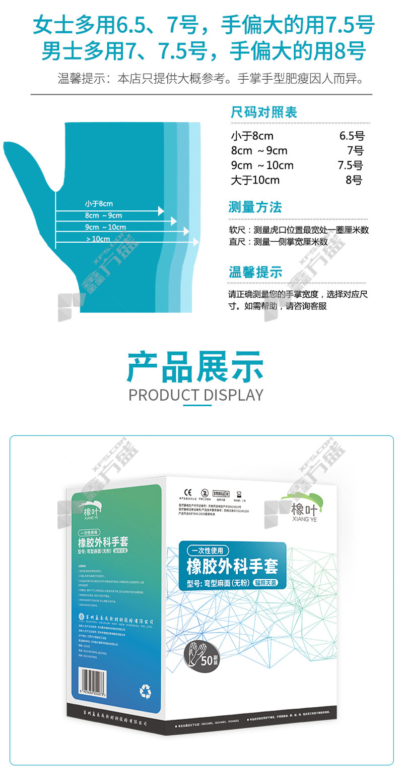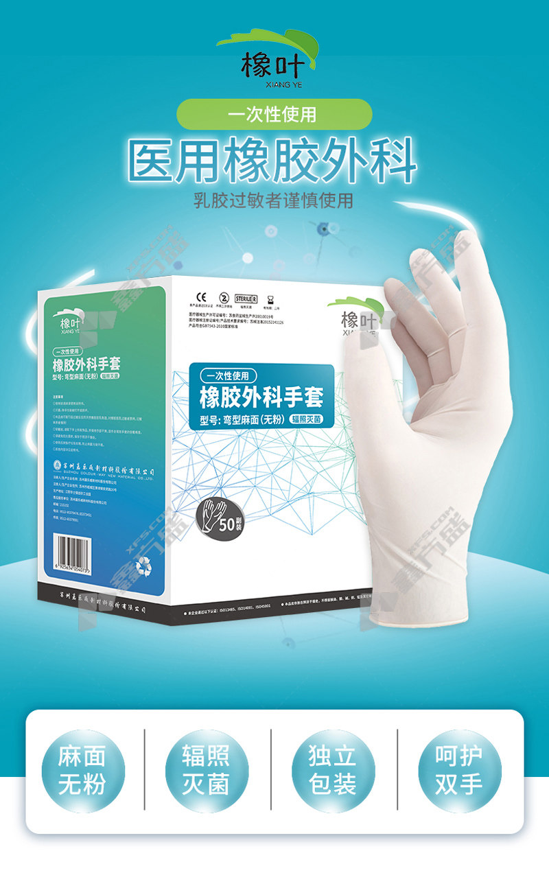 oak leaf powder-free disposable rubber surgical gloves size 8 light yellow 7.5/light yellow