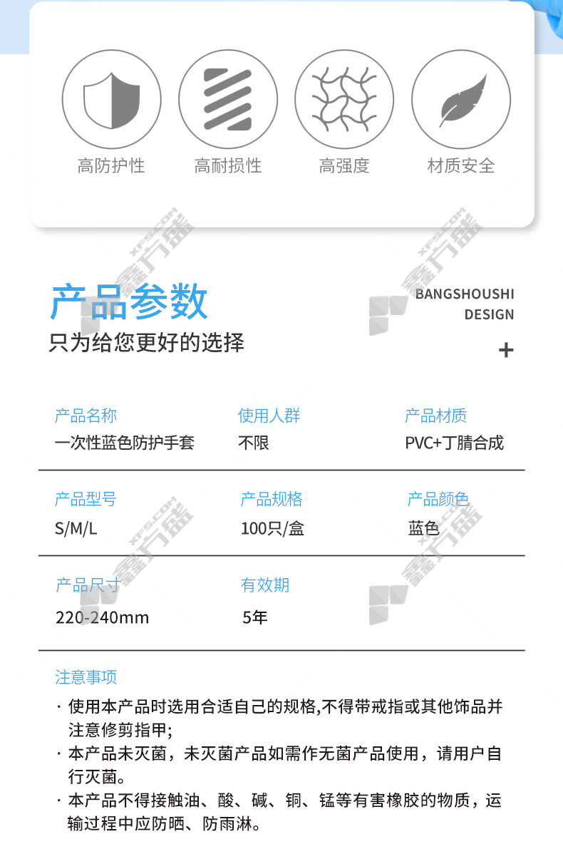 bangshuishi disposable industrial nitrile gloves M code blue 45100 no specifications