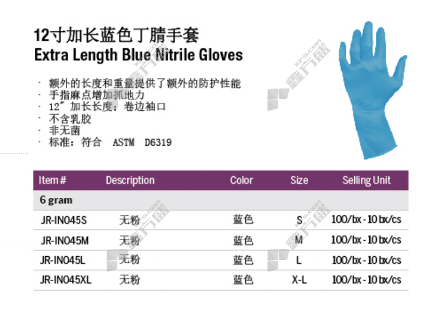 qomeike 12-inch thickened blue disposable nitrile gloves without powder 300 mm M code /300mm S code