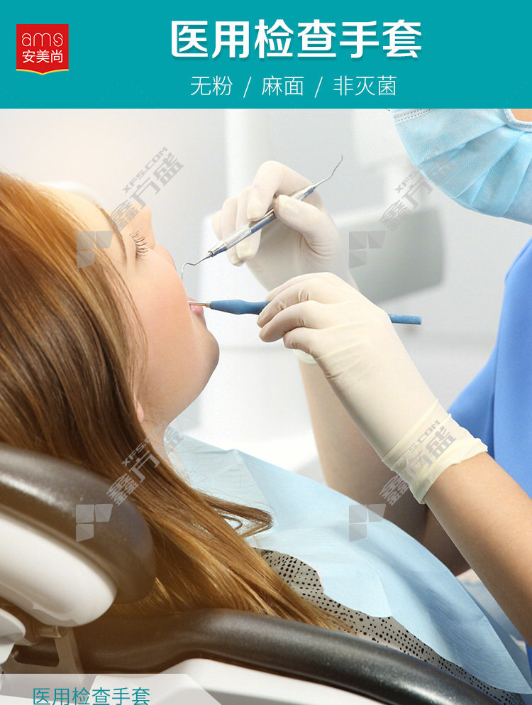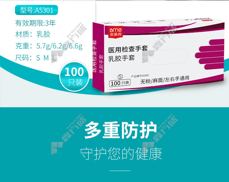 anmeishang disposable white medical rubber examination powder-free gloves A5301 medium size A5301/large