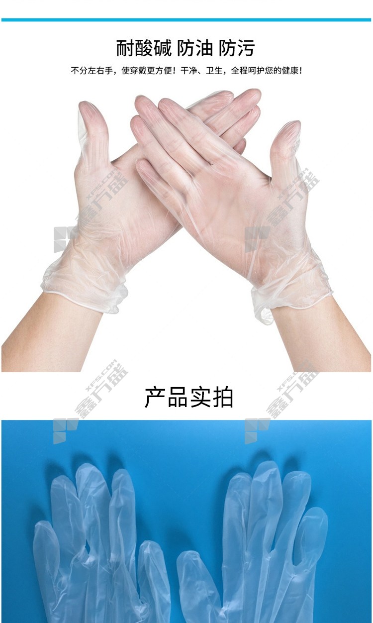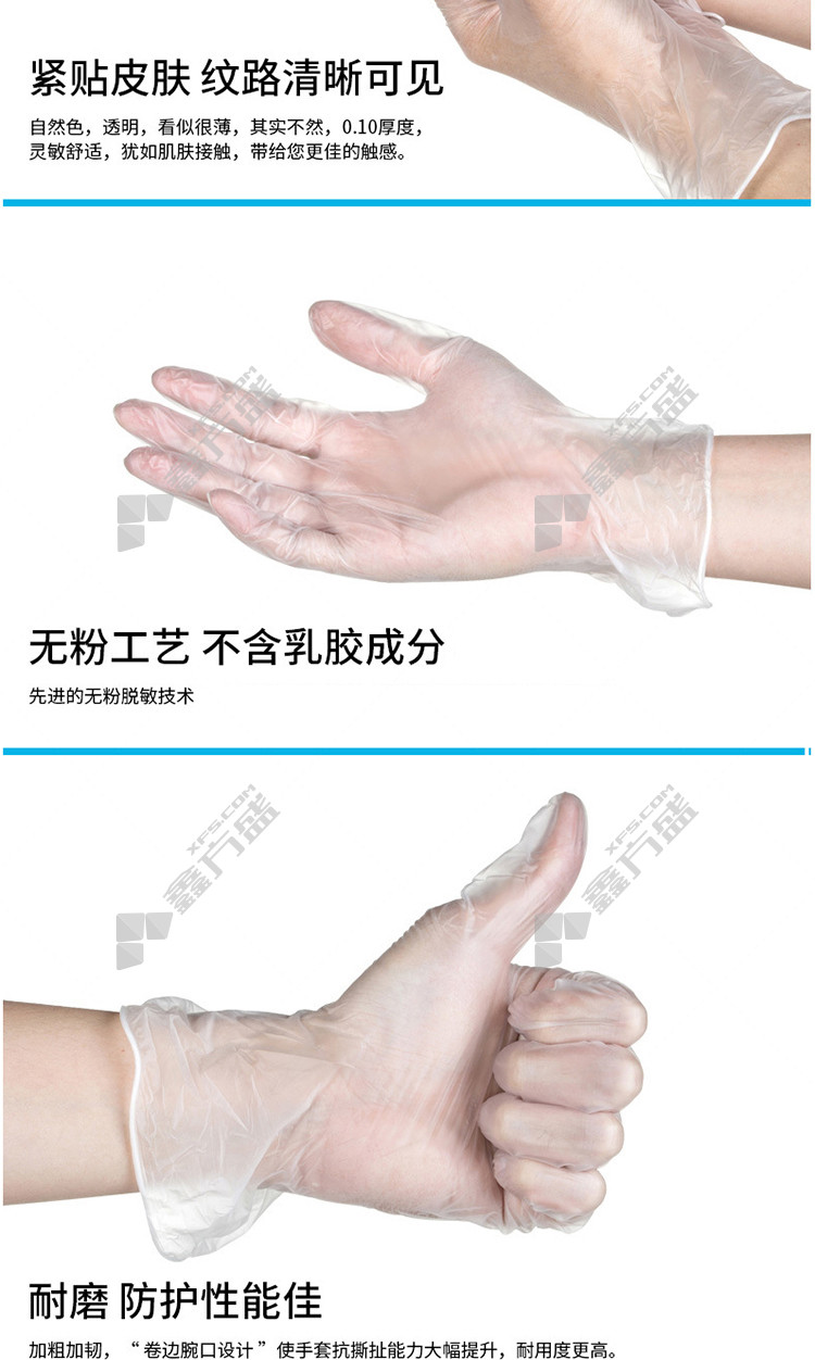disposable powder-free gloves, one size fits all, transparent PVC material no specification