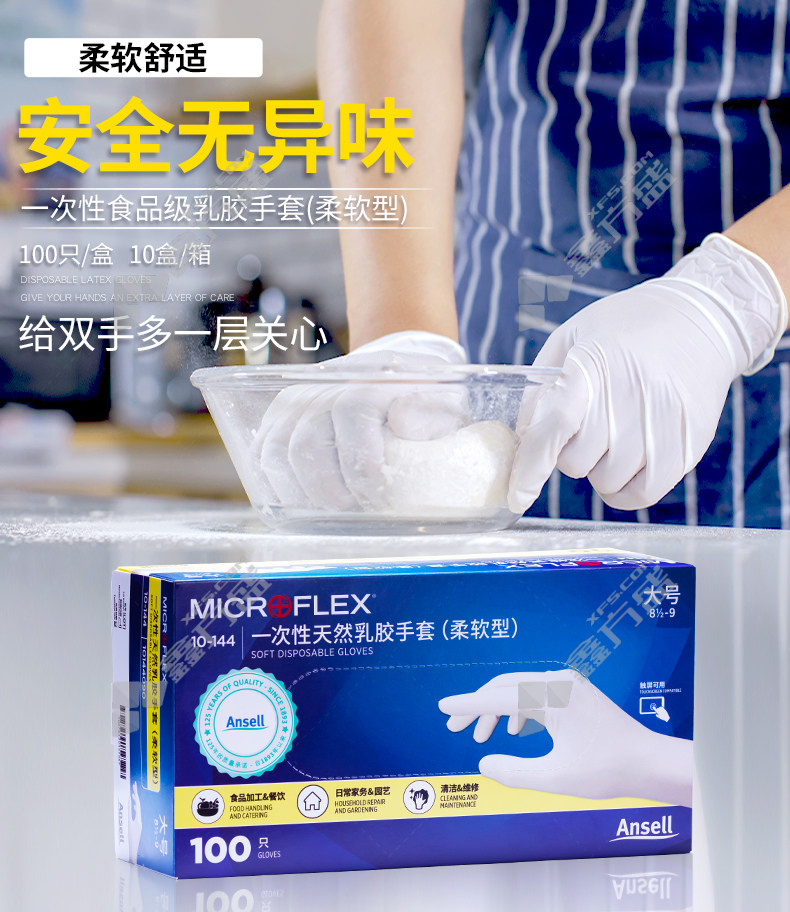 ansell disposable latex gloves powder-free 10-144 L milky 10-144/S/milky
