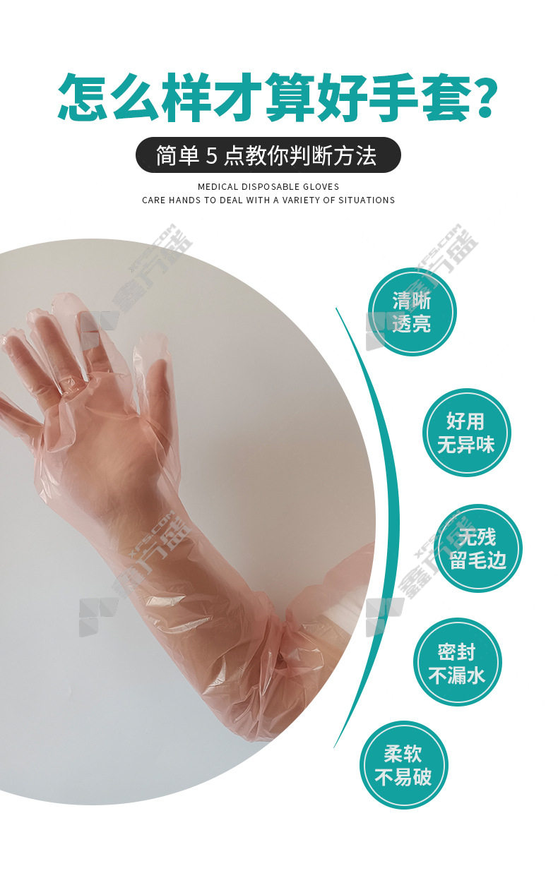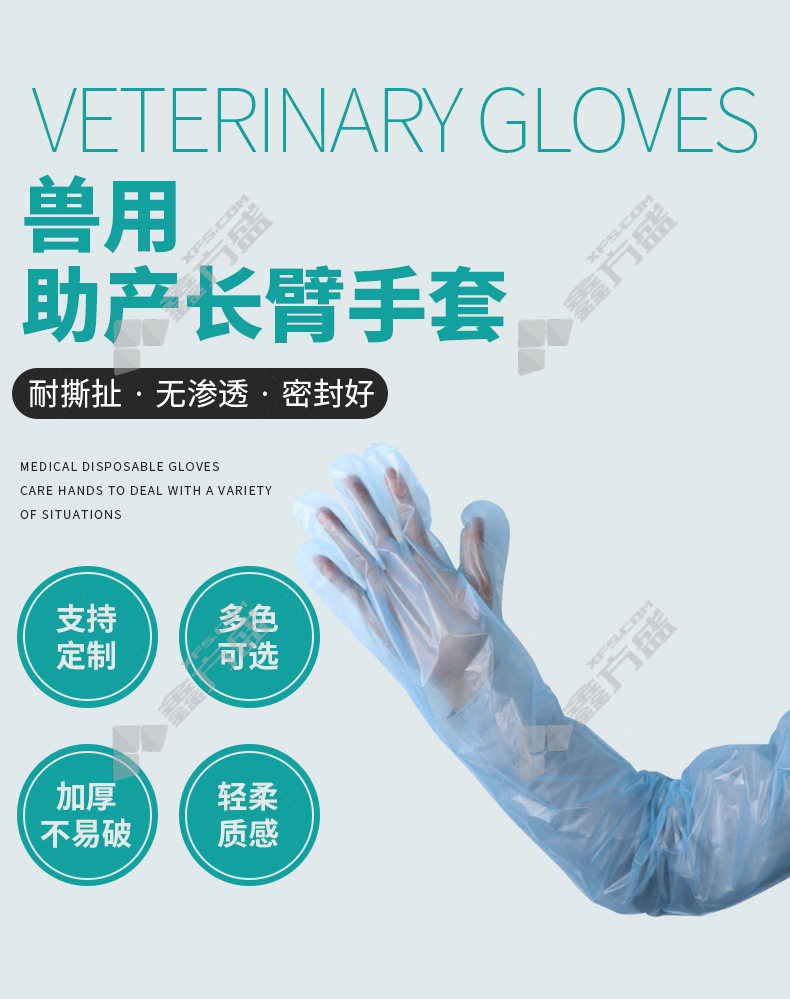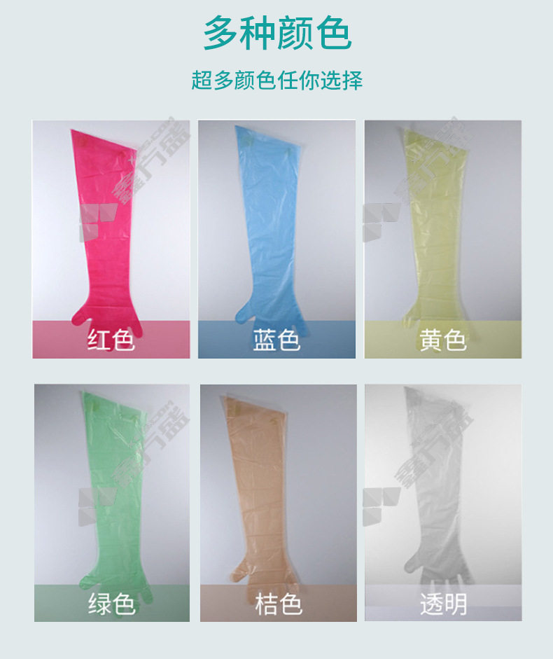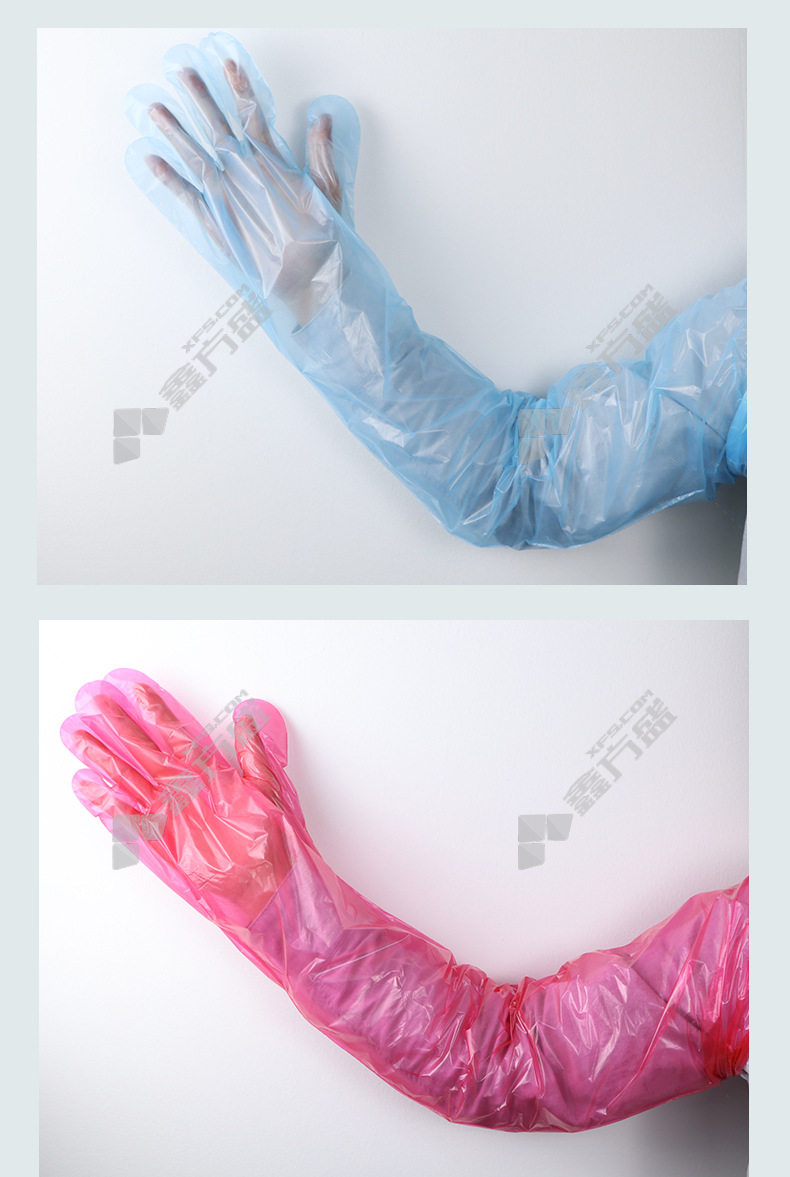 boiling resistant sheng thickening PE plastic farming long arm gloves FNS-02174 flexible 6 each g light blue FNS-02172/ flexible 6 each g/transparent color