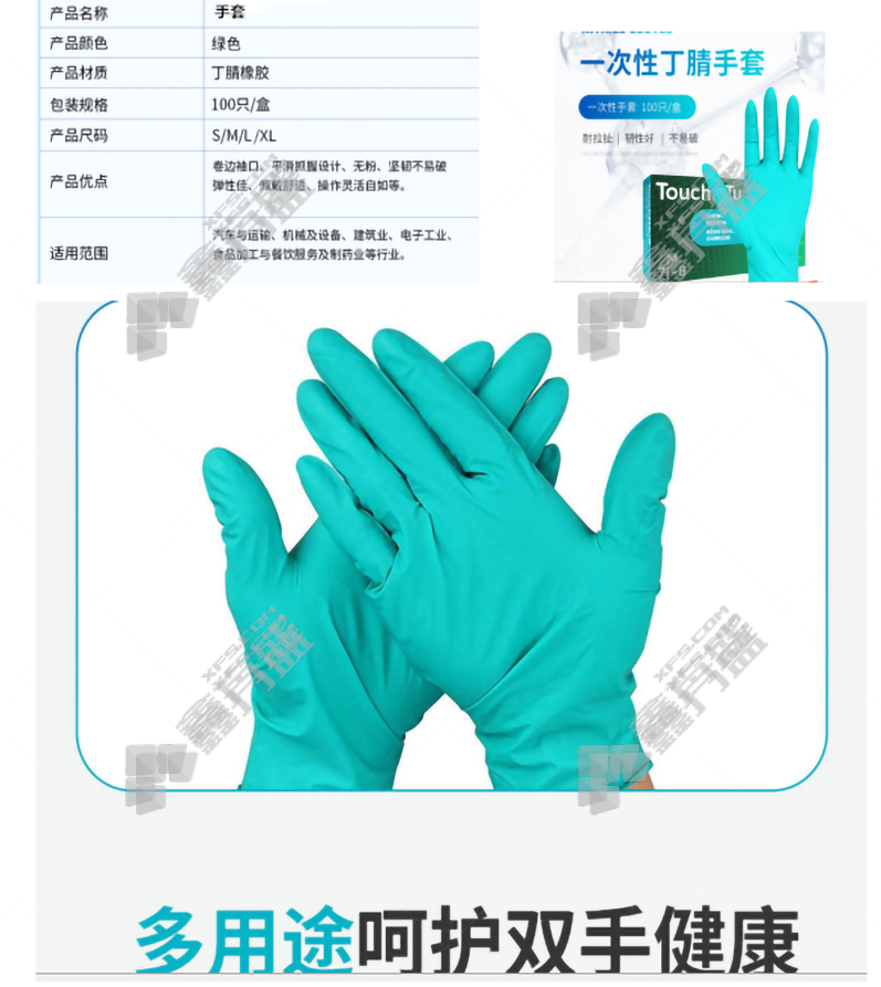 ansell disposable powder-free nitrile gloves S green 475 X240mm no specifications