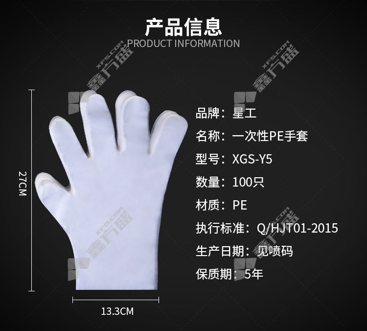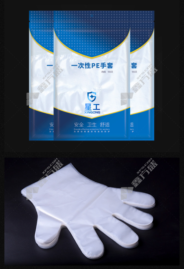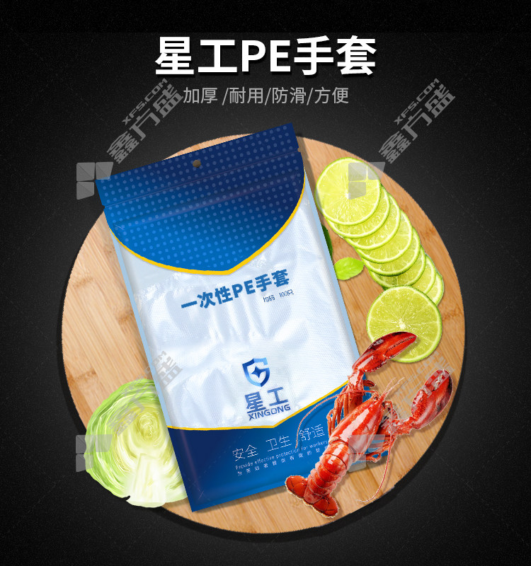 xinggong thickened disposable gloves for food, catering, beauty and housework PE one size fits all transparent XGS-Y5 no specifications