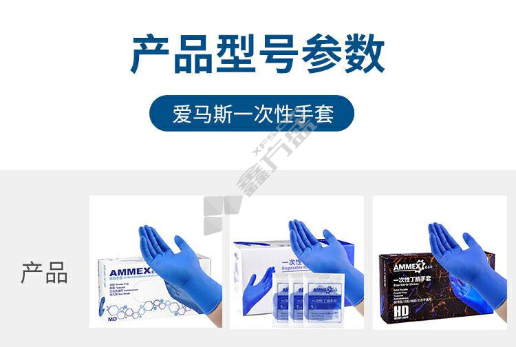 emmaus AMMEX powder-free disposable gloves APFNCMD46100 nitrile material blue powder-free fingertip hemp L 100 only /box of 10 boxes /box no specification