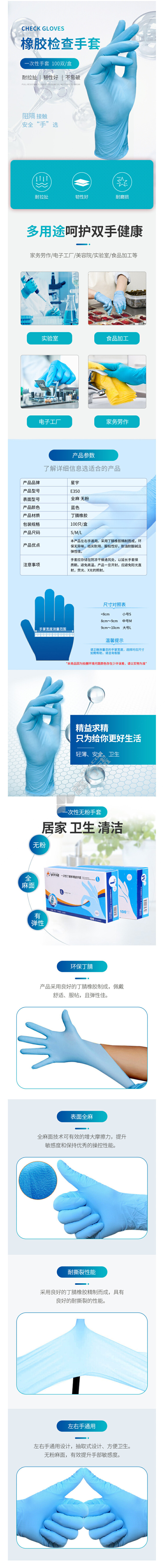 xingyu disposable nitrile gloves smart multi-purpose nitrile gloves powder-free general anesthesia E350 true blue L 100 only /box has no specifications
