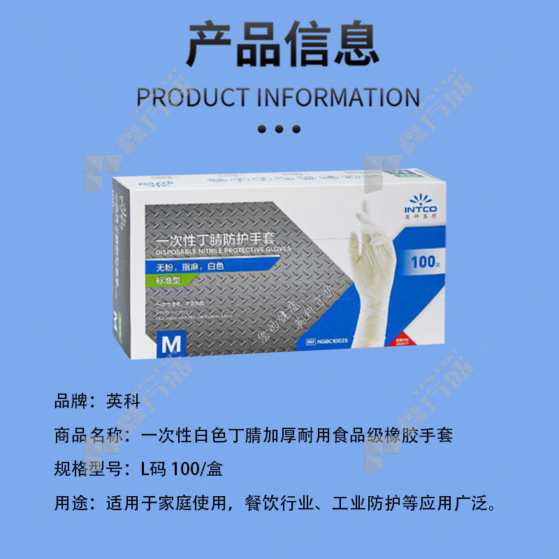 yingke disposable white nitrile thickened durable food grade rubber gloves L code 100 /box has no specifications