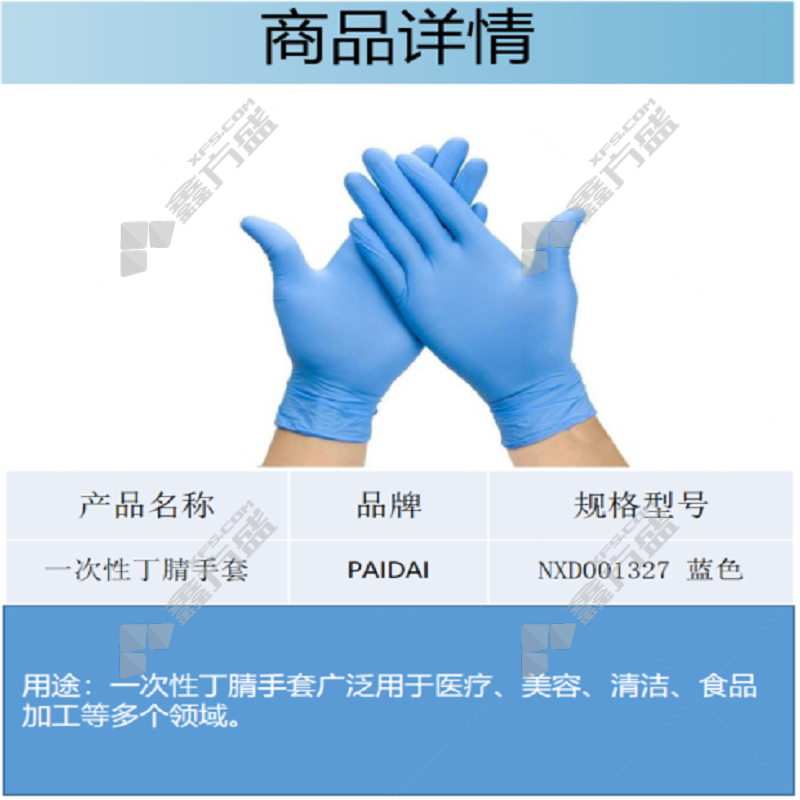 PAIDAI disposable nitrile gloves NXD001327 blue no specification