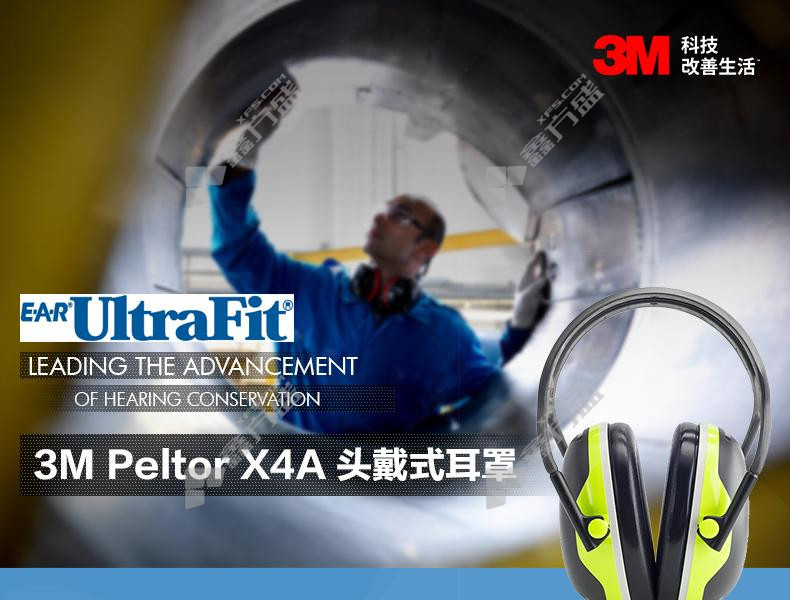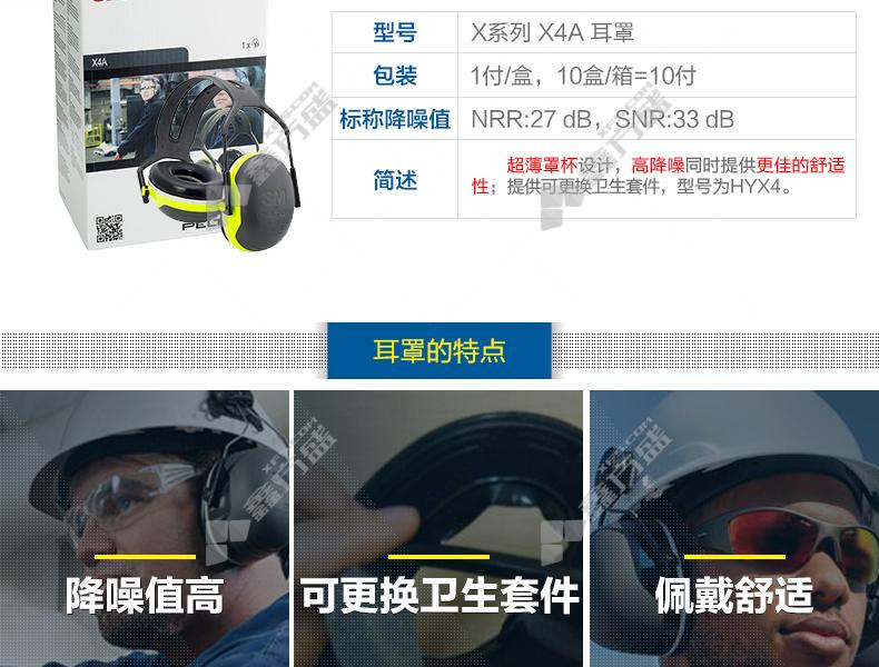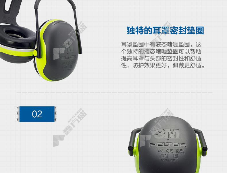 3M X4A earmuffs double-layer shock-absorbing black with green NRR=27dB SNR=33dB no specifications