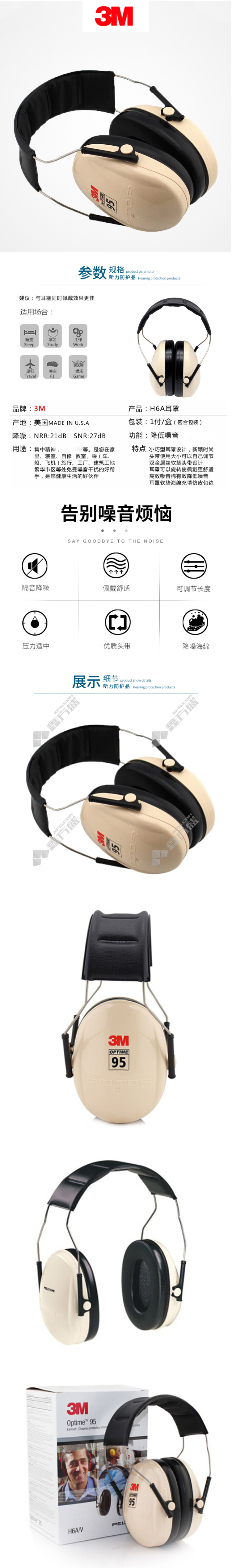 3M PELTOR H6A headband type earmuffs, light and thin, white and black NRR=21dB SNR=27dB no specifications