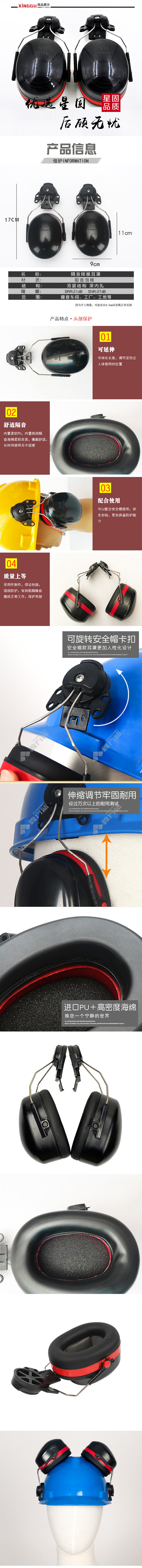 xinggu buckle sound isolation earmuffs 1001032 XG5005 black and red safety helmet type no specifications