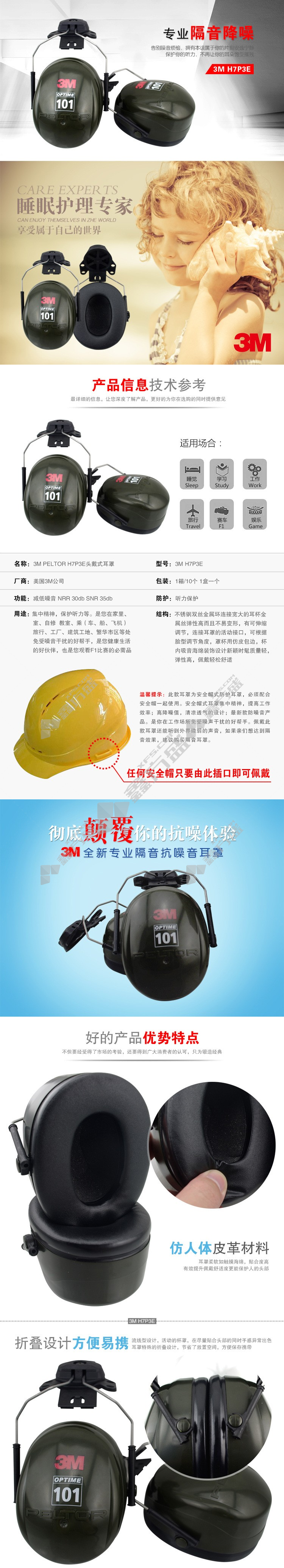 3M hanging cap earmuffs H7P3E PELTOR OPTIME 101 series black (new and old packaging shipped randomly) no specifications