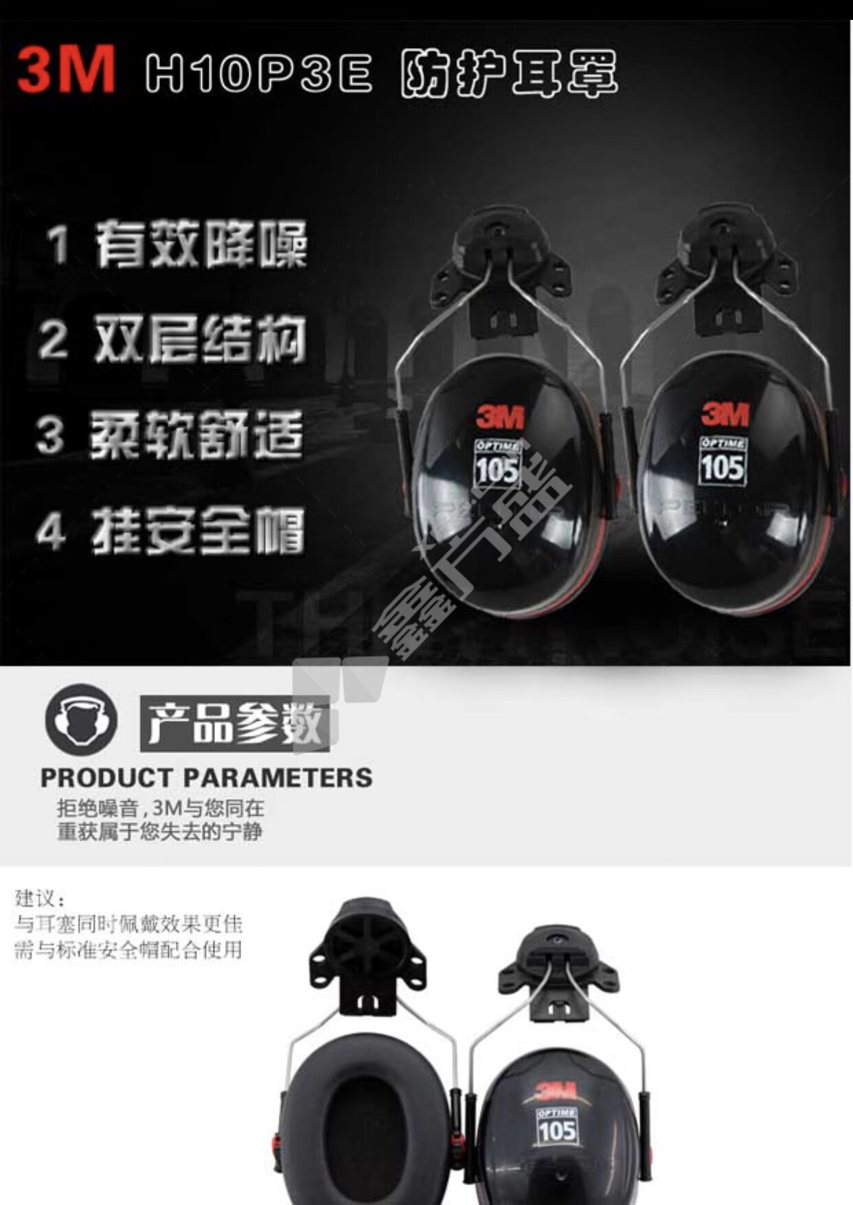 3M hanging cap earmuffs H10P3E PELTOR OPTIME 105 series red and black no specifications