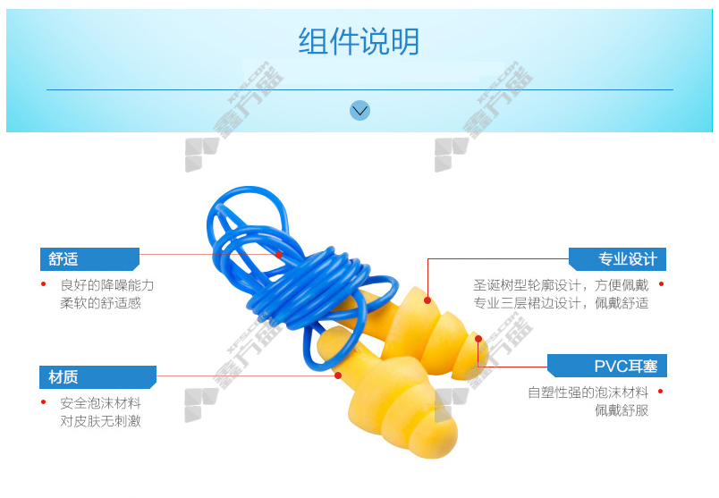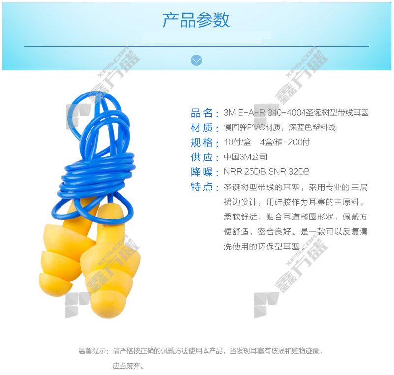 3M 340-4004 christmas tree shaped earplugs with cord NRR:25dB SNR:32dB yellow no specification