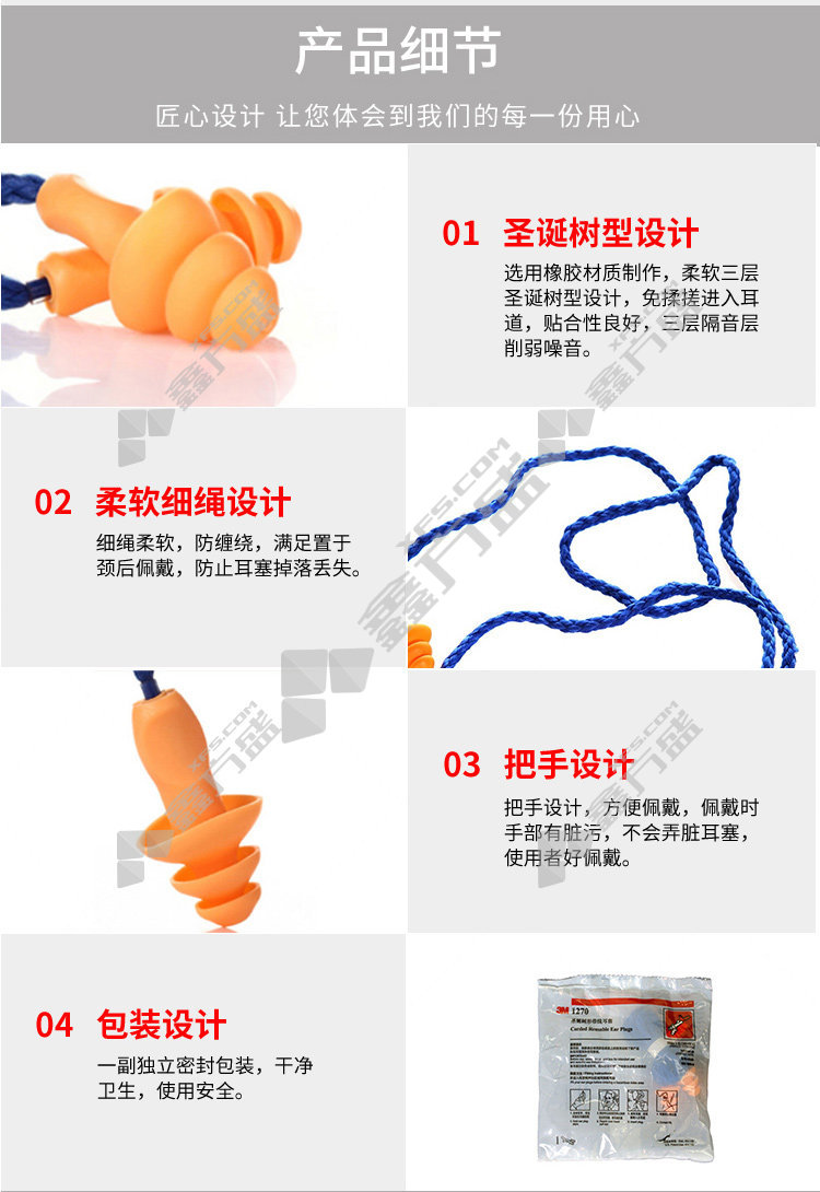 3M 1270 1 pair of christmas tree-shaped earplugs with wires, no specifications