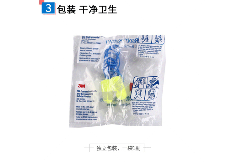 3M disposable earplugs 311-1250 Earsoft high noise reduction bullet type PU 200 pairs of foam material with wires /box has no specifications