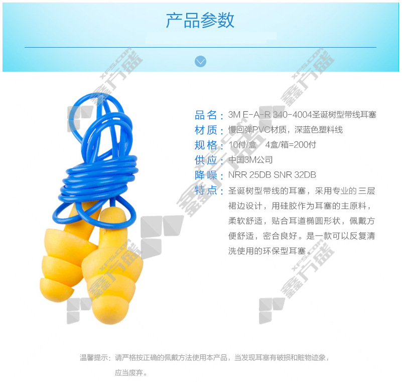 3M reusable earplugs 340-4004 Ultrafit 1 pair of christmas tree-shaped silicone material with wires (large package MAD507) no specifications