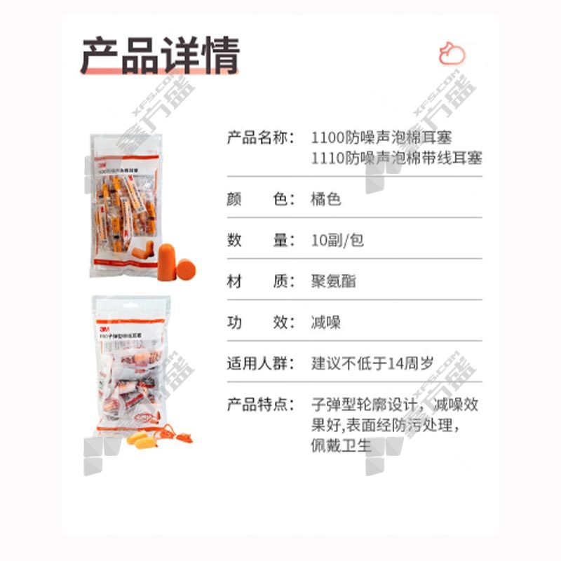 3M 1110 noise-cancelling earplugs, sound-isolating earplugs, in-ear earplugs, bullet-shaped wired earplugs SNR37db 100 vice /1box orange no specifications