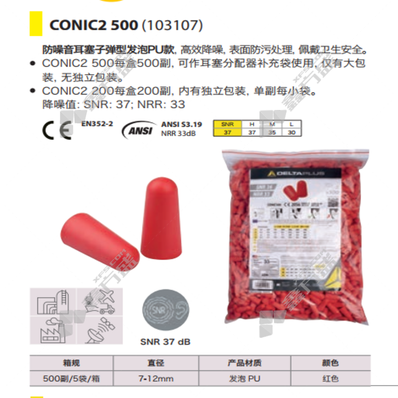 delta earplugs 500 pairs /bottle no specification