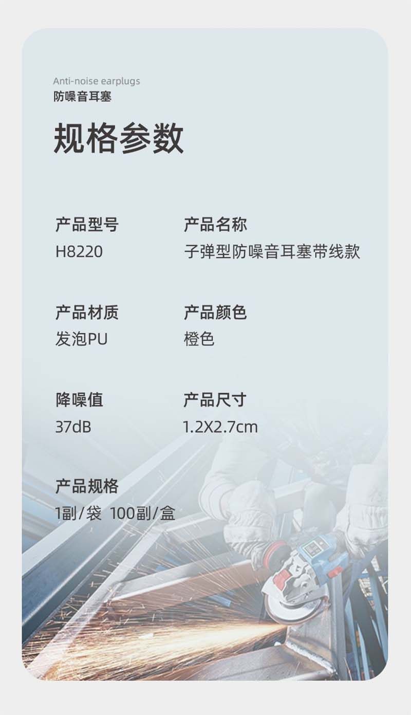 junyu earplugs noise level: 37 db size: 1.2 *2.7cm 1 vice /bag 100 bags /box has no specifications