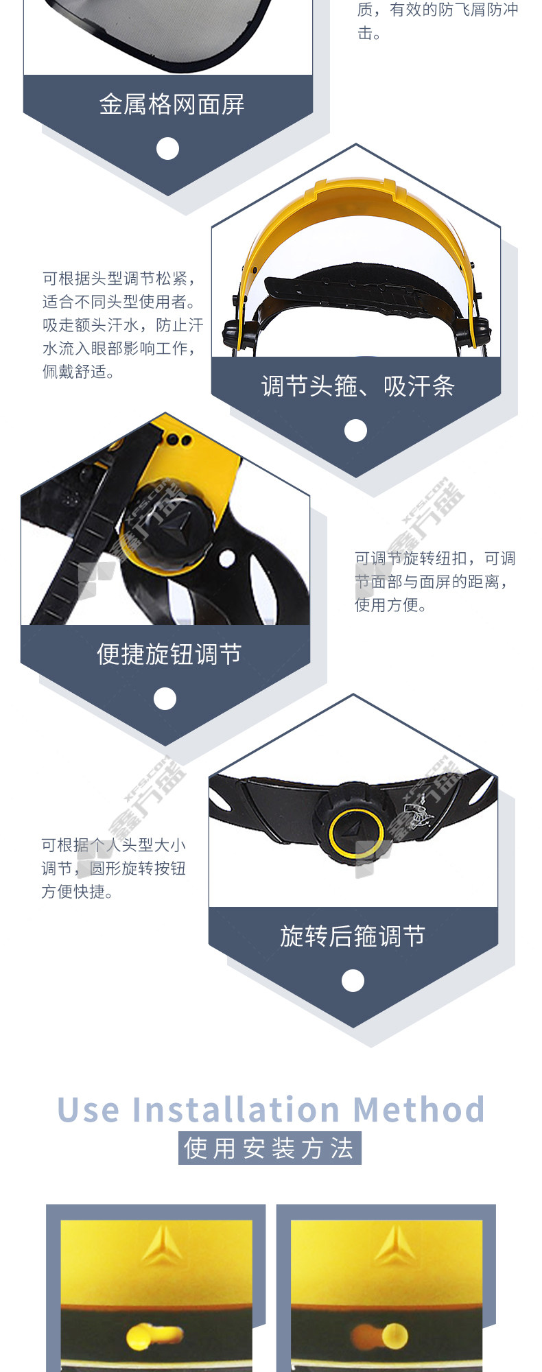 delta headband stainless steel mesh anti-flying chip and anti-impact visor +bracket 101306 PICO2 2mm thick yellow /black no specification