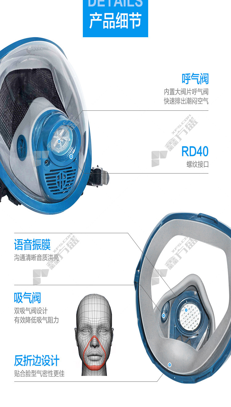 haigubao blue gray silicone full face mask HG-800A no specifications