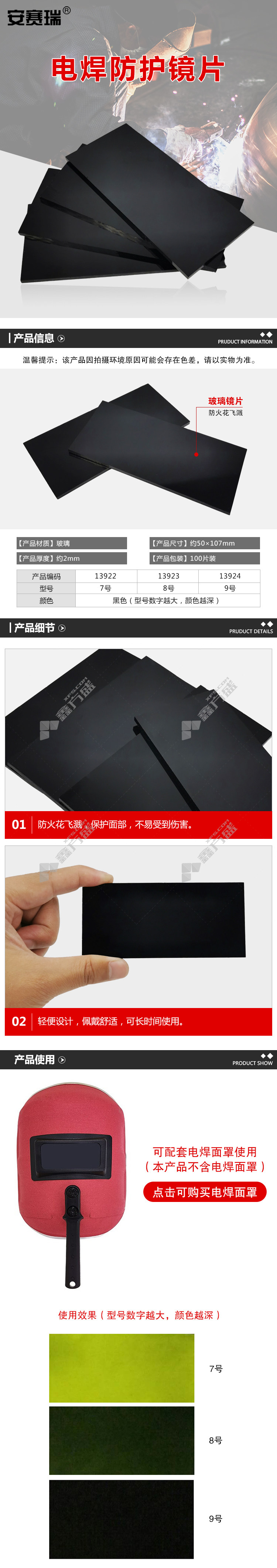 ansery 13922 welding protective lens 13923 8number black 13922/7number /black