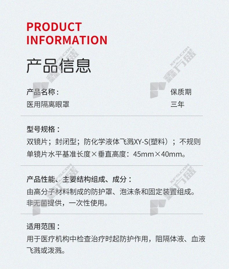 medical goggles safety closure no specifications