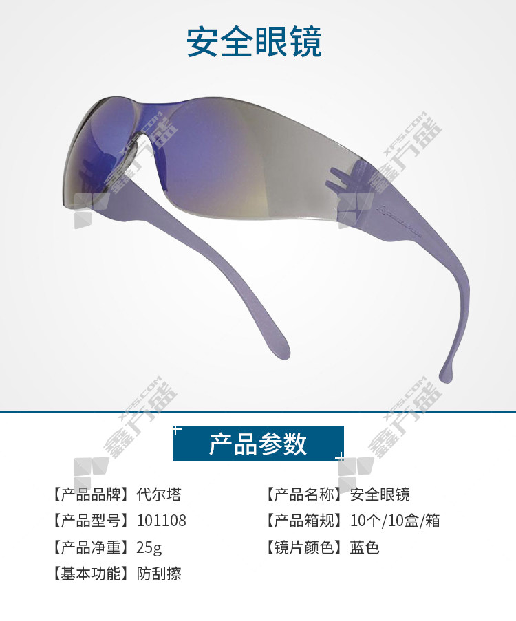 delta anti-scratch safety goggles 101108 blue mirror no specifications